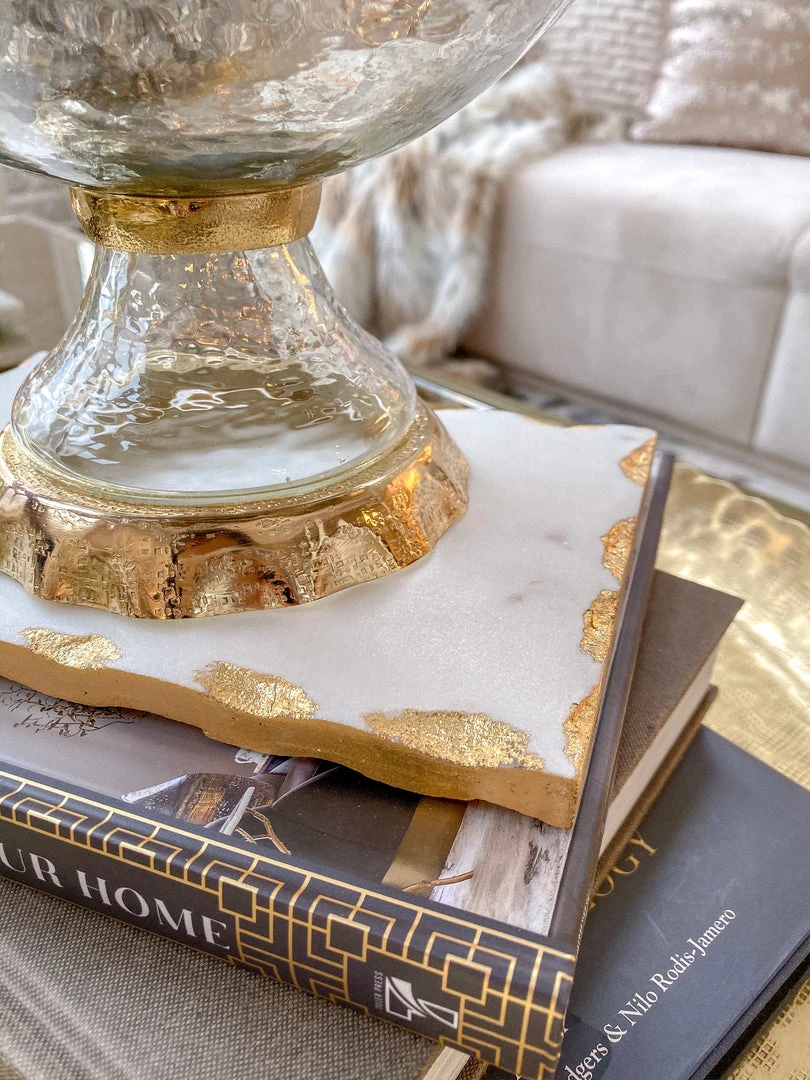 Real marble board for serving or decoration with a gorgeous metallic finish.