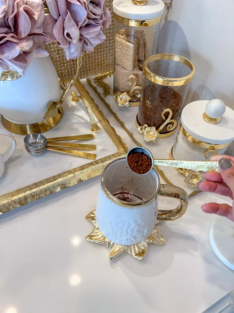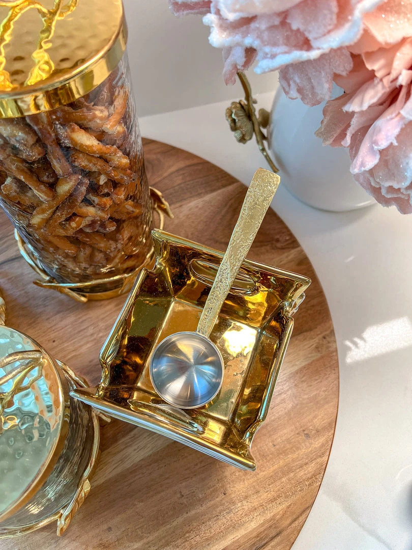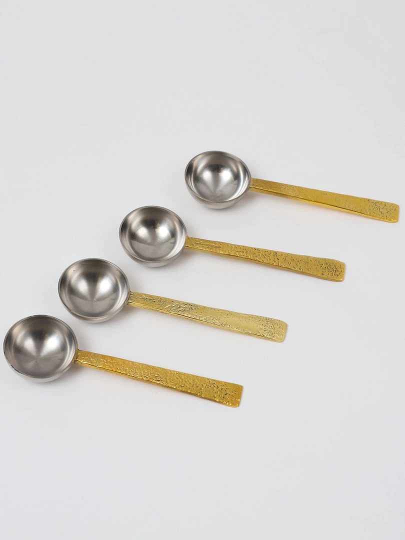 Description: These stylish silver deep spoons are accented with a gold textured handle! Who doesn’t love a pretty spoon!