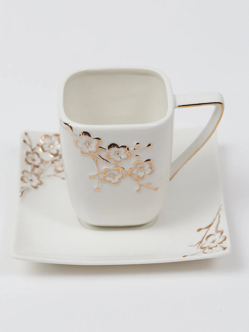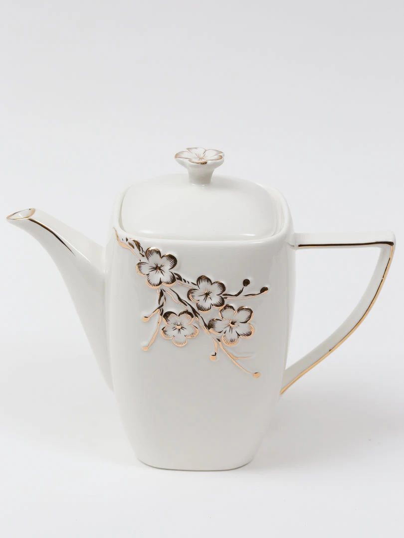 Description: The delicate white ceramic tea set with its stunning gold floral artwork will make a statement.