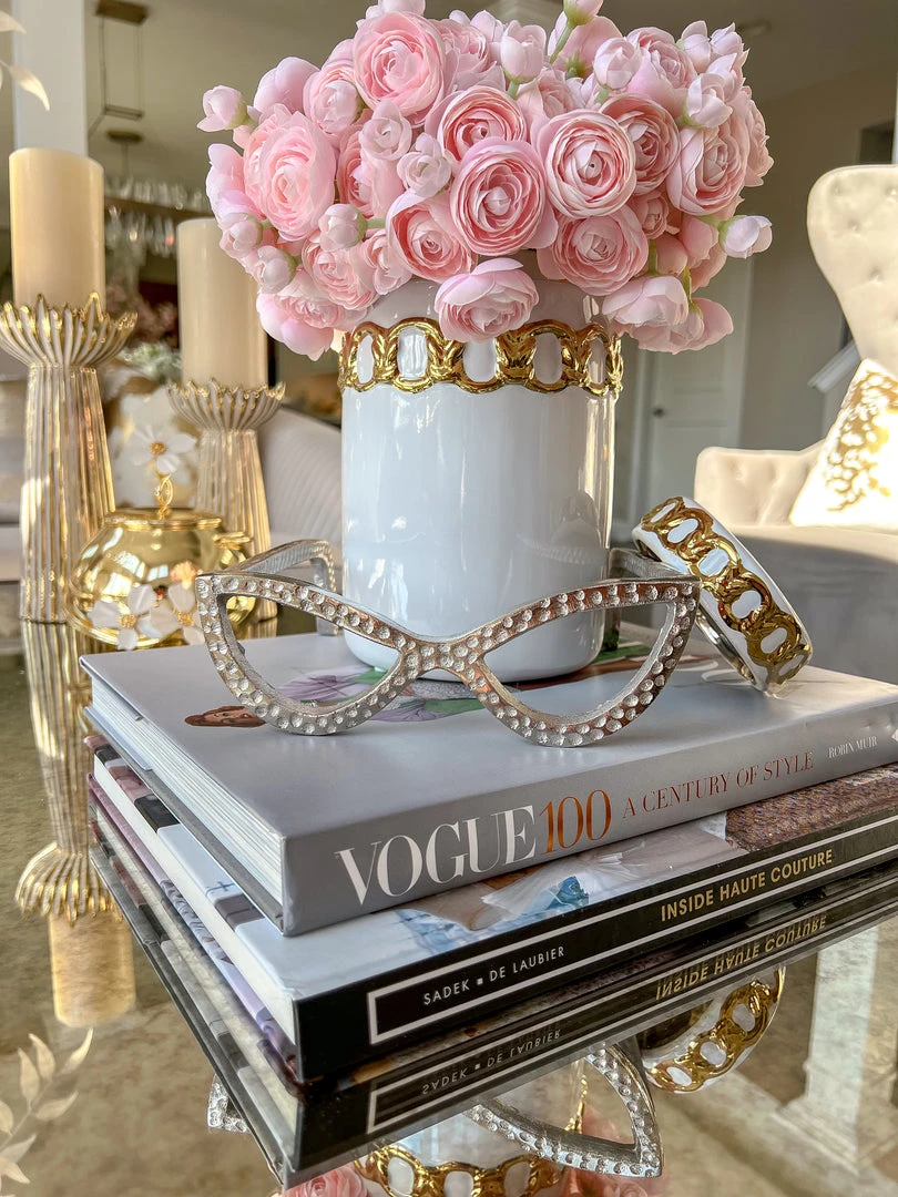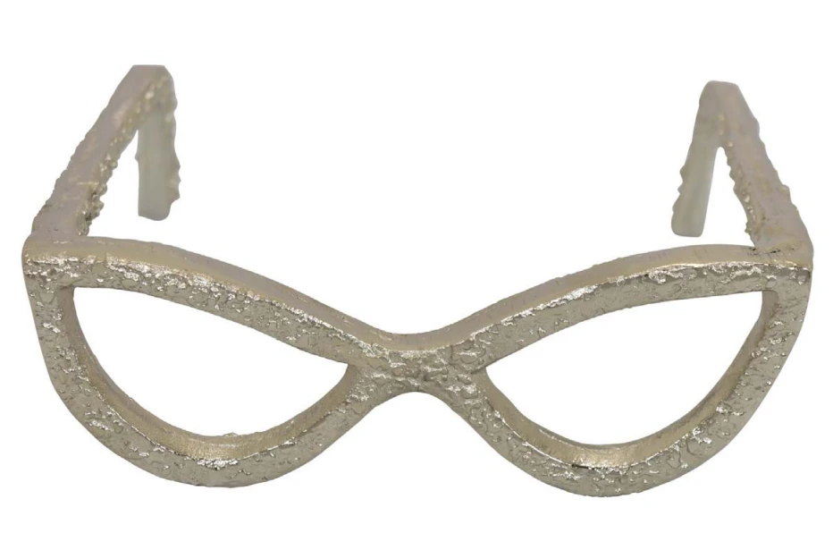 Description: This textured cateye glass sculpture is a great addition to any shelf, bookcase, or coffee table! With the choice of silver or gold, these glasses are very versatile and are such a cute piece!