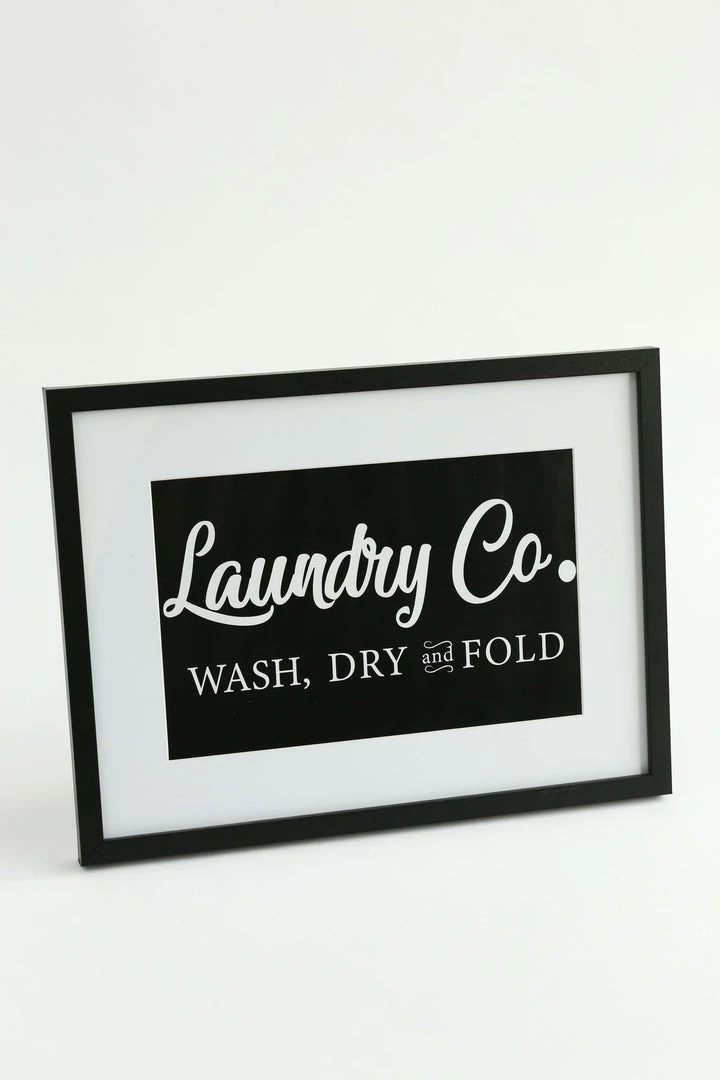 This sign features the phrase, “Laundry Co. Wash, Dry, and Fold” and is perfect for your laundry room! We love the combination between black and white.
