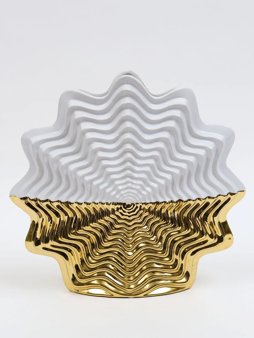 Inspire Me! Home Decor White Ceramic Vase With Stunning Gold Floral Detailed Center