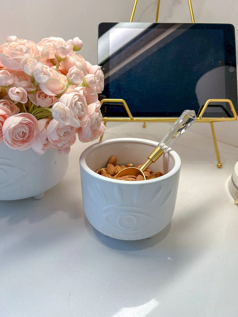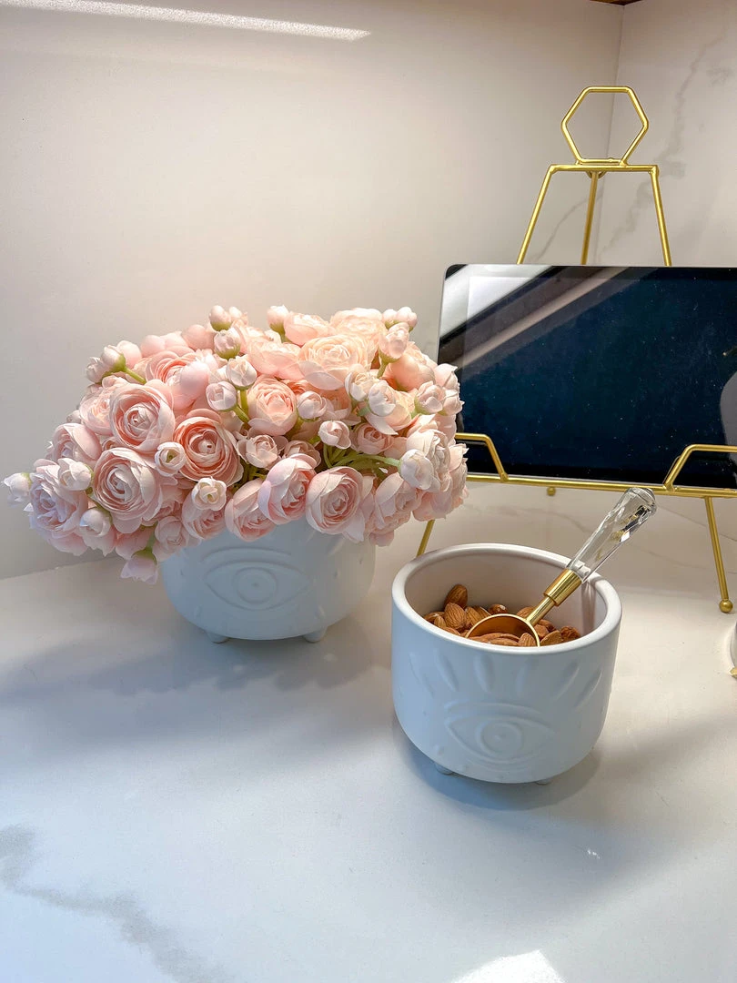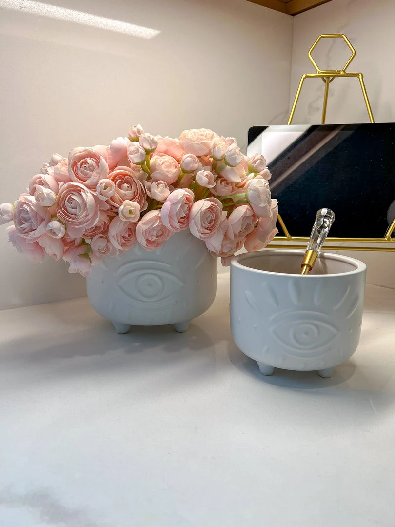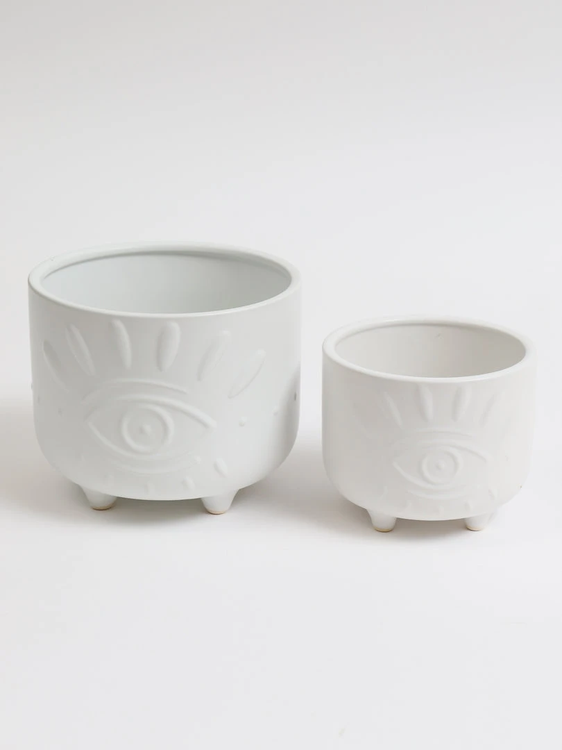Description: These white planters feature the evil eye and come in 2 sizes!