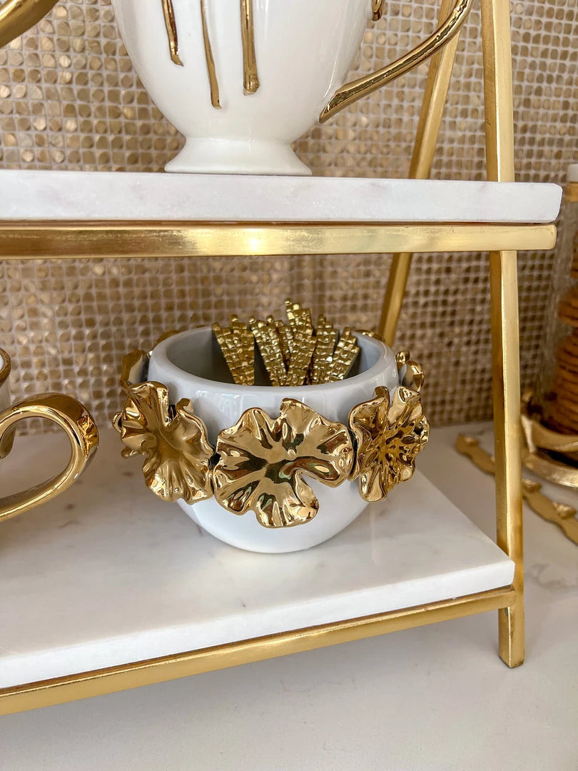 Inspire Me! Home Decor White Ceramic Vase With Stunning Gold Floral Detailed Center