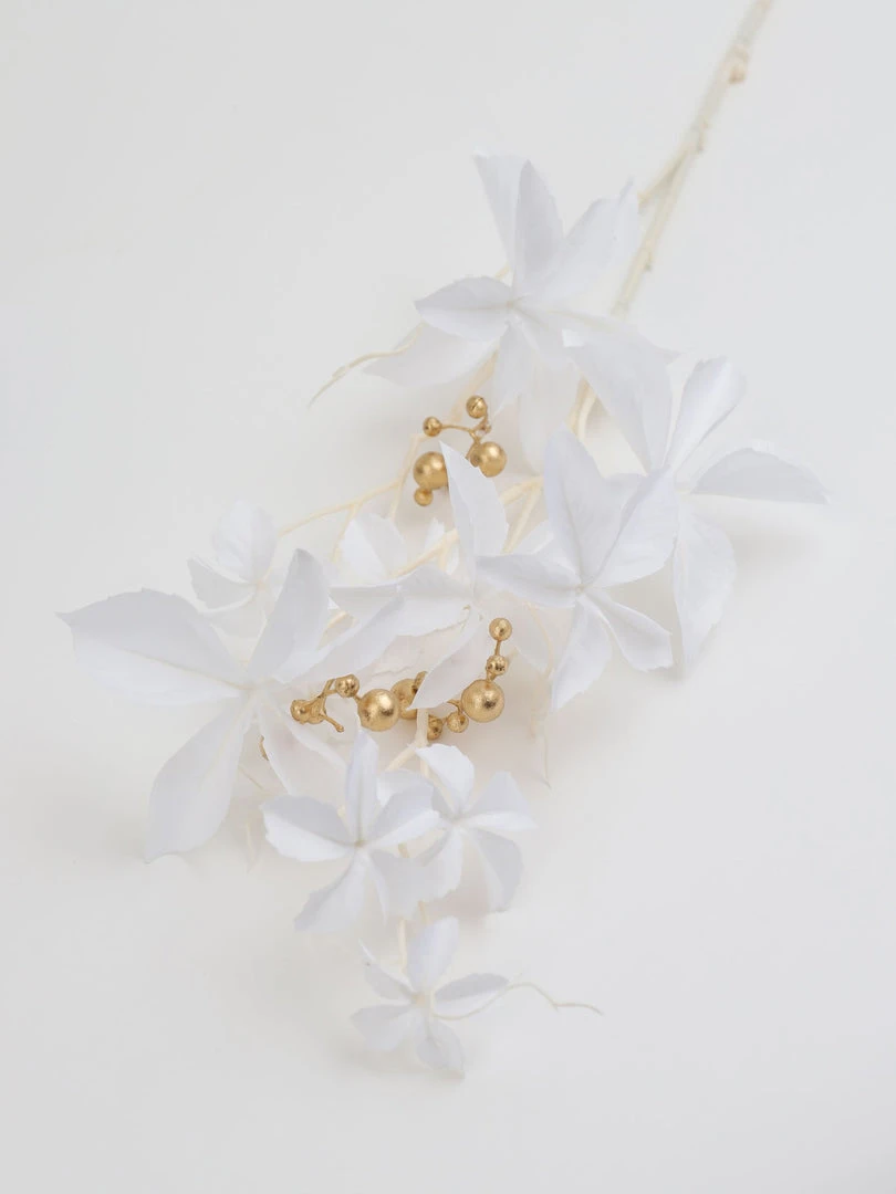 Description: This fun white stem features metallic gold berries and makes a statement in any space! We love the gold and white combination to use all year round!