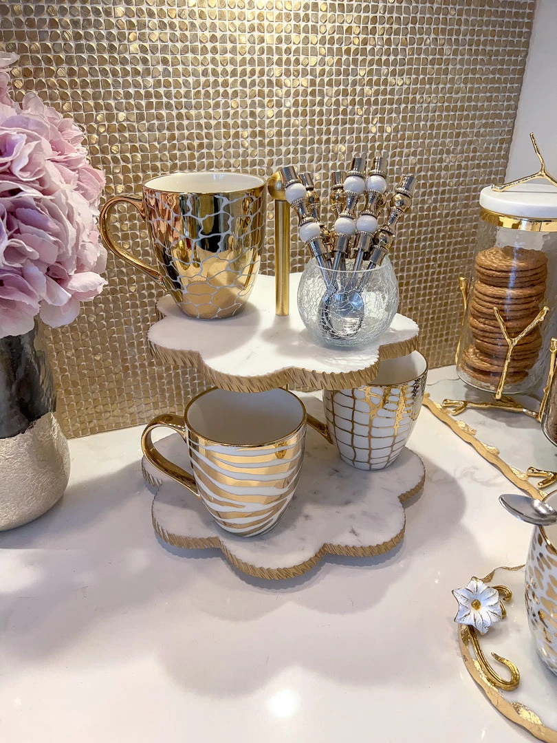 Description: These marble flower-shaped cake stands are so versatile! Use these on your coffee station for your mugs or to serve yummy desserts!