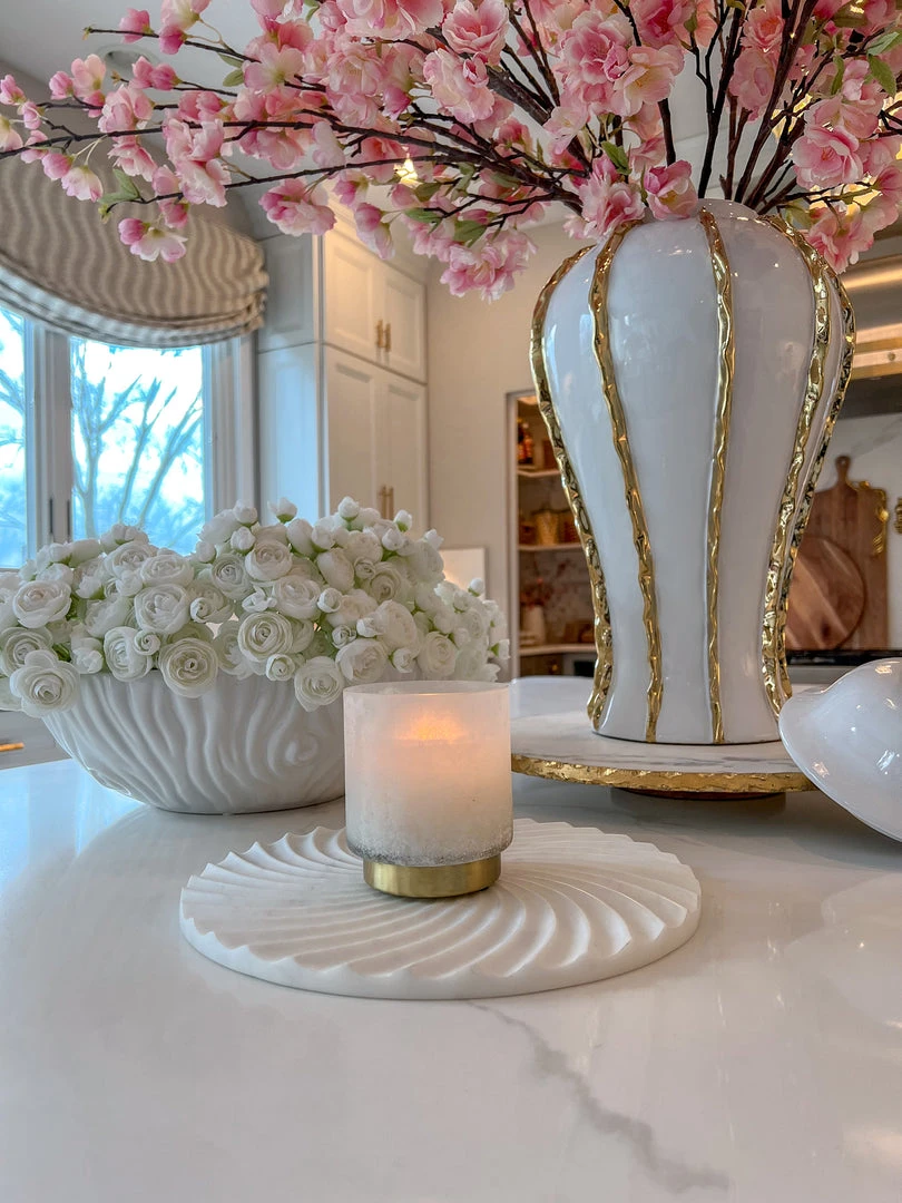 Inspire Me! Home Decor White Ceramic Candle Holder With Gold Elegant Details (2 Sizes)